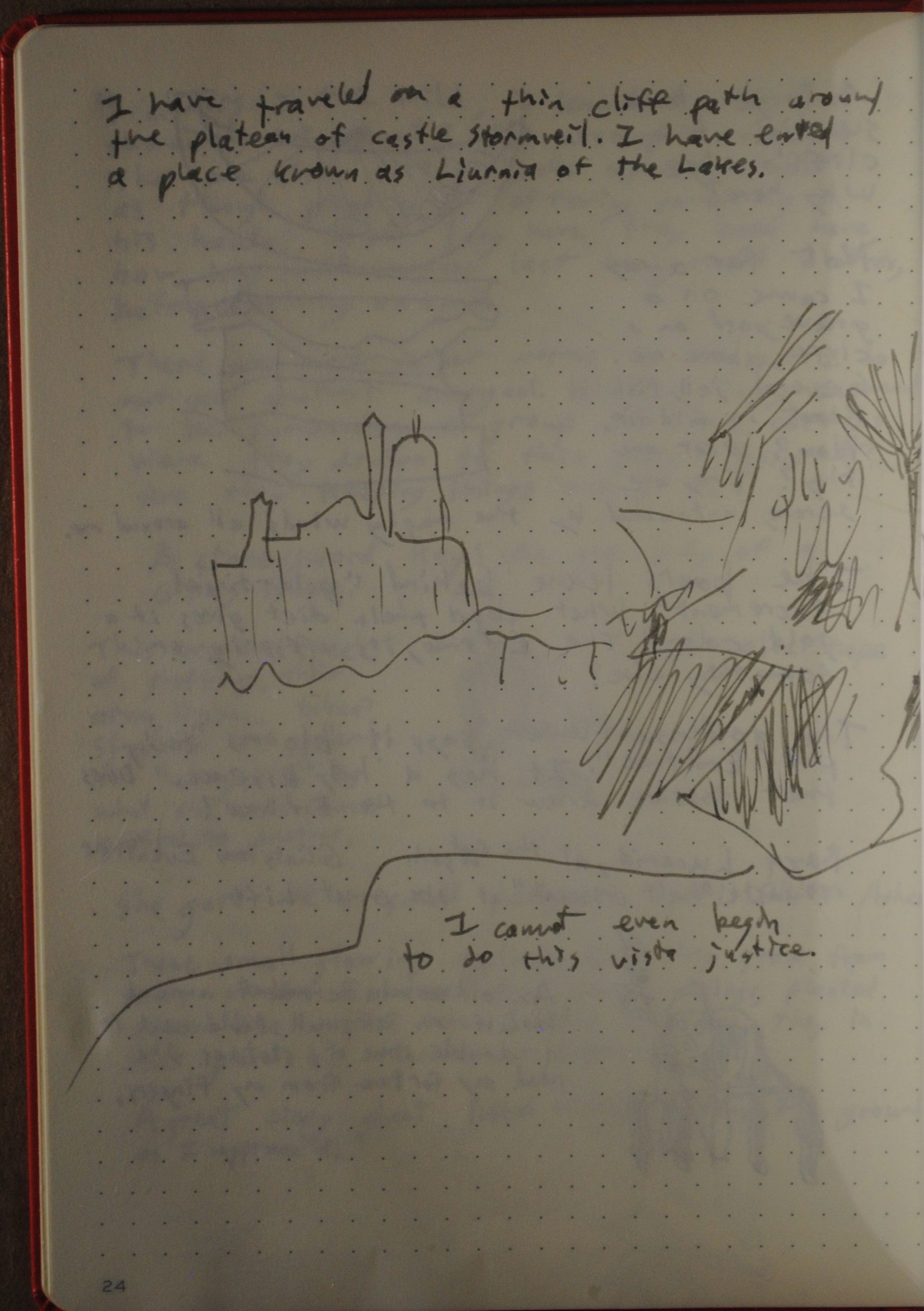I originally wrote the journal with pictures interspersed in the text, and the stilted cadence makes more sense that way, I think? But also I know my handwriting is just not readable. So I’m going to be posting it two ways, as an edited transcribed version, and as straight-up scans.